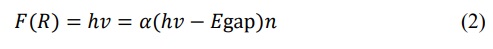where F(R) is Kubelka.Munk function; 𝛼 is the abortion coefficient, and R is the reflectance. Therefore, the Tauc relation becomes (Eq. 2):