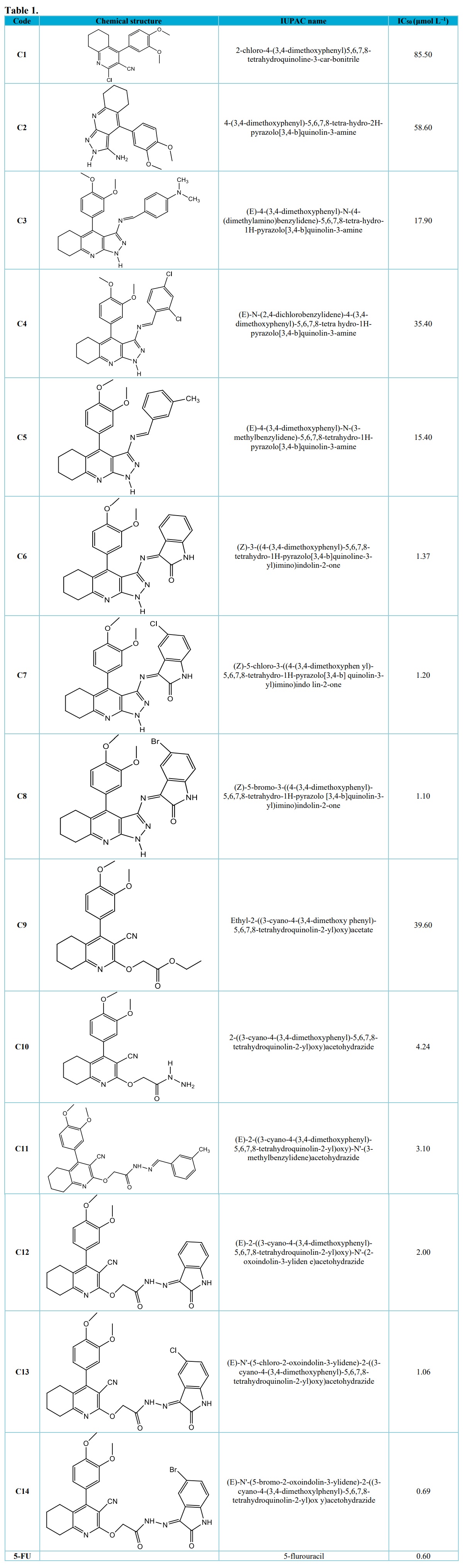 Quinolines and their derivatives are a class of chemical compounds that have been shown to have a variety of biological actions, including anticancer activity (Hayat et al., 2010; Mekheimer et al., 2020). Tetrahydroquinolines are significant building blocks in the chemical structure of a variety of physiologically active derivatives, such as pyrazolo[3,4-b]quinolines, and have strong anticancer properties (Faidallah and Rostomb, 2013). The quinoline and pyrazole moieties in the pyrazoloquinolines framework are excellent anticancer medicines with a wide range of pharmacological efficacies (Opoku-Temeng et al., 2018). In the creation of anticancer medicines, the quinoline hydrazide scaffold plays a significant role (Mandewale et al., 2017). Currently, there is a lot of interest in pyrazoloquinolines framework physiologically active molecules.