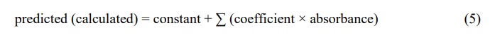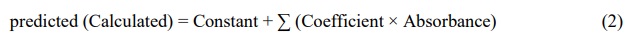 · After that, the calibration samples, constants, and coefficients for each wavelength were calculated in order to calculate the predicted concentrations;