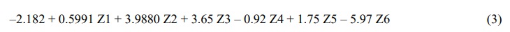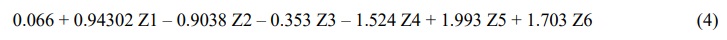 The PCR was computed by using a few principal components and performed regression analysis of these components with concentration in order to determine the principal components coefficients of sitagliptin and metformin hydrochloride for PCR model as illustrated in Table A4 of the Appendix. From the treatment of the principal component’s coefficients in (Table A4 of the Appendix) using Minitab 17 program. Regression equations (Eqs. 3 and 4) of sitagliptin and metformin hydrochloride were obtained and used to calculate the predicted concentration as shown below.