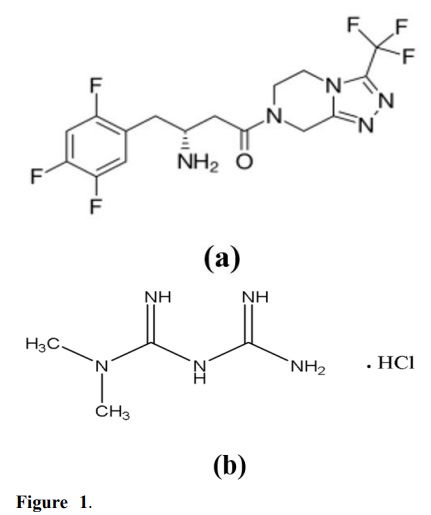 Chemically, sitagliptin is (3R)-3-purcino-l-[3-(trifiuoromethyl)-5,6-dihydro[1,2,4] triazolo [4,3-a]pyrazin-7 (8H)-yl] -4-(2,4,S-trifiuorophenyl) butan-l-one phosphate monohydrate (Fig. 1a). It is used as dipeptidylpeptidase-4 inhibitor; treatment of diabetes mellitus (British Pharmacopoeia Commission, 2020; Swamy et al., 2020).
