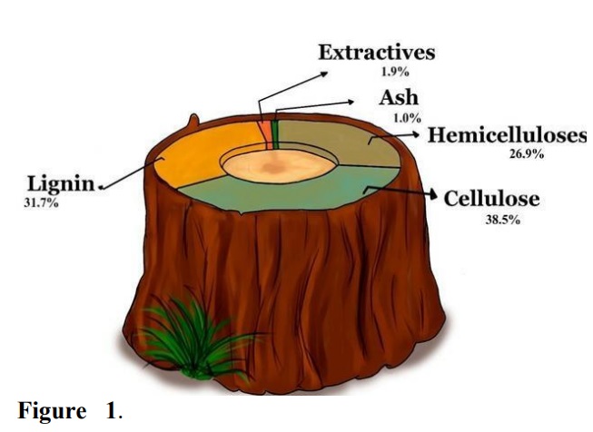 Most of the raw biomass, after pretreatment, are composed of hemicellulose (~28%), cellulose (~40%), lignin (~33%), extracts (~2%) and ash (< 1%), as shown in Fig. 1. The extracts are low molar mass chemical compounds. They consist mainly of terpenes, fats, waxes, and phenolics, and their content and composition vary among species, location and season (Jönsson and Martín, 2016). These components are associated with different types of cellular organization and biochemical processes of biomass, which makes their composition relative from one species to another. The use of lignocellulosic biomass discarded in biorefineries has been surprisingly positive. Recent study showed the possibility of obtaining monomers for polymers, high-value fuels and pharmaceutical intermediates that have a wide variety of structural complexity (Bender et al., 2018).