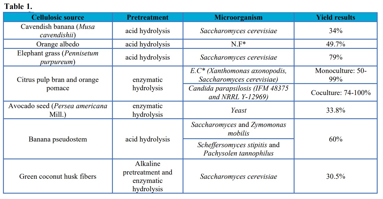 It is important to mention that Brazil, as one of the largest holders of biological diversity, whether fauna or flora, has a variety of resources from unexplored sources for the conversion of sources of lignocellulosic materials. Moreover, we are faced with the use of various parts of a plant. As mentioned below, the cases range from studies involving parts of the same Musa cavendishii plant to the use of waste, such as the fiber present in the green coconut husk. The summarized list of the cases presented below are shown in Table 1.