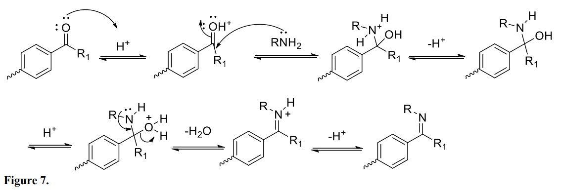 There is a big similarity between carbonyl and the imine groups. Therefore, their reaction is very similar, but the reactivity of the carbonyl group is higher than the imine group because the electronegativity of oxygen is greater than nitrogen. To increase the reactivity, Lewis’s acid was used as a catalyst in imine reactions (Chan et al., 2019).