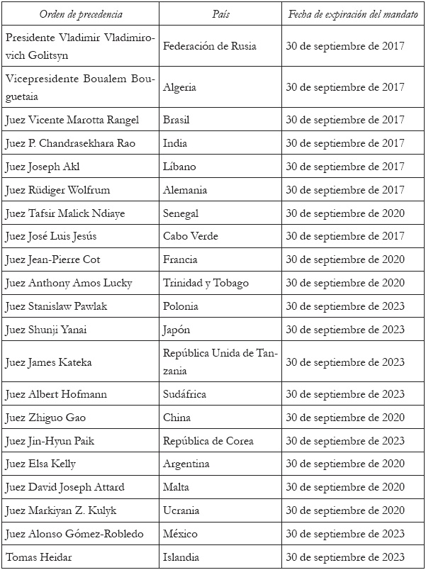 Adicionalmente, los tres jueces que terminaron su labor en el Tribunal son: Bernardo Sepúlveda Amor (México), Kenneth Keith (Nueva Zelanda) y Leonid Skotnikov (Federación de Rusia).