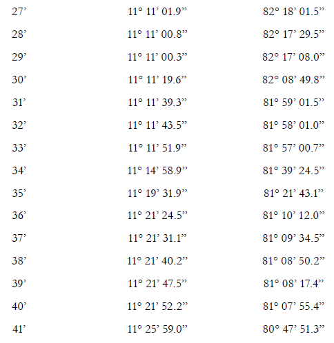 201. Teniendo en cuenta la complejidad de la línea descrita en el párrafo precedente, la Corte considera oportuno trazar una línea simplificada sobre la base de los principales puntos de inflexión de la línea de equidistancia ajustada, que indica un cambio de dirección de la línea en mención. Las coordenadas de los puntos de la línea simplificada son los siguientes, de acuerdo con el sistema wgs 84: