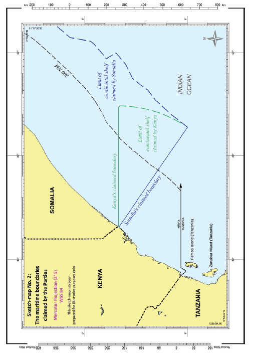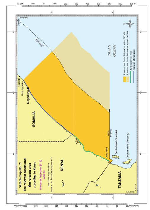 Contexto geográfico e histórico-Somalia y Kenia son dos Estados de África del Este cuyas costas son adyacentes-Acuerdo convencional de 1927/1933 entre Italia y el Reino Unido relativo a las fronteras de sus territorios en África del Este-Somalia y Kenia obtuvieron su independencia en 1960y 1963 respectivamente-Ambos Estados son parte de la Convención de Naciones Unidas sobre el Derecho del Mar (la CNUDM)-Ambos Estados depositaron una solicitud ante la Comisión de Límites de Plataforma Continental (la Comisión de Límites) con el fin de obtener recomendaciones sobre el límite exterior de la plataforma continental más allá de las 200 millas náuticas-La Comisión de Límites aún no ha formulado ninguna recomendación.