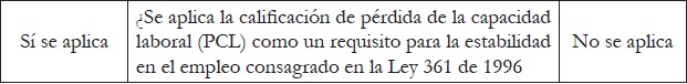 Pregunta problematizadora: ¿Se aplica la calificación de pérdida de la capacidad laboral (PCL) como un requisito para la estabilidad en el empleo consagrado en la Ley 361 de 1996?