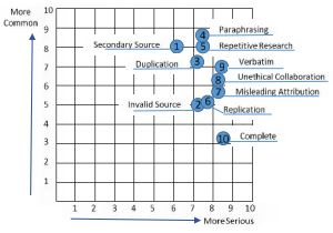 Figure 1 shows different methods of plagiarism in common practice. They are classified according to frequency and severity 1)(2)(5.