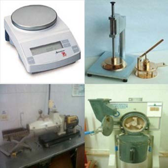 The equipment used for the development of this research are: a brand powder diffractometer Bruker D8 Advance model, a X-ray fluorescence Axios Panalytica, a laboratory extruder with empty model New Wave Metal Souza Ltda. with rectangular mold laboratory hammer mill brand Servitech model CT-058, two stoves, the first brand Gabrielli Stainless steel with natural ventilation from a range of 0 °C to 300 °C and the second Dies with electric resistance heating, vibrating screen brand Gabrielli, ASTM mesh sieve set 10 (2000 μm), 30 (600 μm), 60 (250 μm), 80 (180 μm), 100 (150 μm) and 120 (125 μm), plasticity equipment of Pfefferkorn, a brand muffle furnace Gabrielli, digital scale mark 1500 g capacity OHAUS adventurer 0.01 g sensitivity , thermobalance Ohaus MB45 and sensitivity 0.0001 g, hydrometer 152 H and Mitutoyo digital caliper brand and sensitivity 0.01 mm. Figure 1, shows some equipment used.