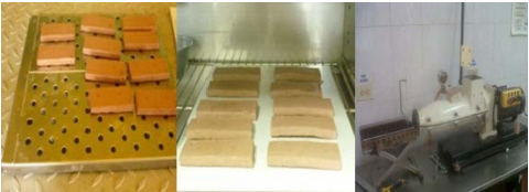To perform the Bigot curve analysis, test tubes were formed, initially the material was wetted and left to stand for 12 h to homogenize the clay mass. Subsequently, the forming process, which is performed by extrusion, obtaining rectangular specimens of dimensions 11 cm ×1 cm × 4 cm (Figure 5) was started. The drying process was conducted at three temperatures 30±5 ºC; 60±5 °C and 80±5 °C.