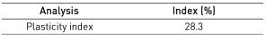 As shown, this plasticity index 28.3%; This index corresponds to the amount of water needed to reach the clay a plastic consistency, enabling extrusion molding. For practical purposes, it should be above 10%, so they are suitable for the production of structural products, common manufacturing in the region. Besides, above this percentage it will not be at risk of problems during forming material, as may be inappropriate size or cracks in raw parts.