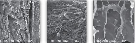 The scaffold’s microstructure could range from membranes to porous structures. Also for their fabrication, several biodegradable materials (synthetic polymers as polycaprolactone, polylactic-co-glycolic acid, polyethylene glycol, polyvinyl alcohol and natural polymers as alginate, collagen, gelatin, chitin, chitosan) 5)(6 and ceramics (hydroxyapatite and bioactive glasses) have been explored and the possibility of processing hybrid polymer/ceramics scaffolds have gained considerable attention for improving mechanical properties and biodegradation on tissue engineering applications 7)(8.