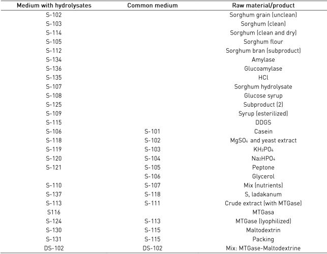 The use of sugarcane molasses and xylose obtained from acid hydrolysis of sorghum straw meal has been studied 14; both are raw materials that are considered waste and inexpensive carbon sources; however, they have not yielded the expected results in enzyme activity. Therefore, it is important to continue investigating new available raw materials that could produce suitable carbon sources for the growth of bacteria and MTGase production. In Mexico, sorghum is an important grain in agriculture, but it is used almost exclusively for feeding cattle. In contrast, corn is used mainly as food for humans. Tamaulipas state ranks first in the production of sorghum and maize; however, these crops are sold at a low price 15. Therefore, the use of these grains to obtain fermentable sugars for growth of microorganisms and production of metabolites would reduce the cost of the process and also, would add greater value to these grains. It is possible to obtain by enzymatic hydrolysis a high concentration of glucose from grain flour and replace glycerol as a carbon source for the growth of Streptomyces mobaraensis with the subsequent production of MTGase.