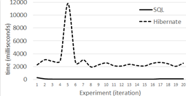 We tested Hibernate and SQL queries maintaining the same conditions for the three query complexity levels and DB sizes. To that end, we ran all tests the same day, in the same machine, with the same process load, using default configurations for Spring, Hibernate, Apache and MySQL, and maintaining the same DB optimization features. This way, we left the complexity of the query as the only variable responsible for the query performance comparison.