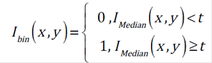 Threshold segmentation method is appropriate because elements of interest have been highlighted above, having a clear difference of objects to be removed from the scene. Segmentation is accomplished by using the following expression 2: