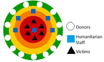 Along the humanitarian supply chain, several actors are involved, which are located in the different levels. Actors can be classified as donors, humanitarian staff, and affected people.