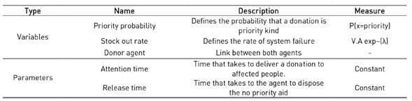 The model building focuses on the actions of the humanitarian agent with the respective variables and parameters, these can be seen in Table 4 below.