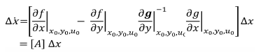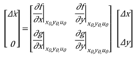 Thus, the linearized set of differential algebraic equations may be reduced to a set of differential equations as shown in (4) and matrix A is usually known as the system state matrix.