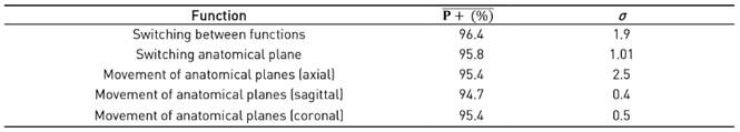 and standard deviation (() for different types of functions developed. The percentages describe a good performance with an average value exceeding 94%.