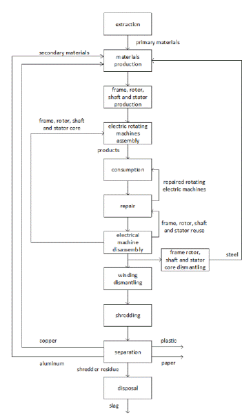 The first paper on recycling electrical machines was published by us in 2000 and presented early ideas on this subject1. Likewise, The Directive of the European Parliament in 2002 on waste electrical and electronic equipment (WEEE) introduced new regulations. “The purpose of this Directive is to contribute to sustainable production and consumption by as priority, the prevention of WEEE and in addition, by the reuse, recycling and other forms of recovery of such wastes so as to reduce the disposal of waste and to contribute to the efficient use of resources and the retrieval of valuable secondary raw materials”2. These legislative efforts have begun to mandate recycling and manufacturer “take back”. European regulations ask, “electrical motors manufacturers to provide relevant information on disassembly, recycling or disposal at end-of-life” of an electrical motor. This regulation is a call to manage the life-cycle of an electrical machine2) (3.