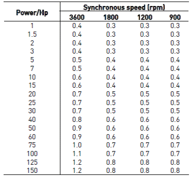We present in Table 1, suggested standard air gaps for induction motors as a function of mechanical power output and synchronous speed for medium size, induction motors, totally enclosed construction, class B insulation (design B) and 60 hertz. These air gaps were determined using empirical equations and adjustments from experience15.