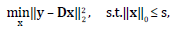 An easier problem than that in Eq. (4) can be obtained by relaxing the ℓ0 quasi-norm constraint to the ℓ1 norm, moving it to the objective function using Lagrange multipliers. The resulting optimization problem can be formulated as in Eq. (5)