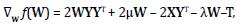 where the last line follows by the property of the trace being a linear mapping. Therefore, the gradient of the function f (W) in Eq. (9) is given by Eq. (10),
