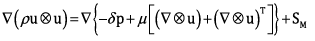Conservation of momentum equation, in vector form, Eq. (3):