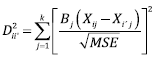 where Bj represents the regression coefficients obtained with the real levels of the factors, k is the number of parameters of the regression model, MSE is the mean square error, Xij are the real levels of the “point to the center”, and Xij are the real levels of the neighbor points. All pairs of points located at the Dii´2 distance are the neighbor points which are used to calculate the pure error. Given that values of (j, Xij and MSE are known, the levels of the neighbor points Xij are determined such that Dii´2 < 1.