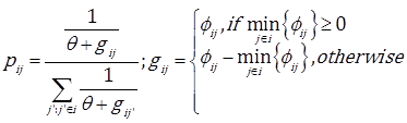 θ is a very small constant to avoid divisions by zero. As a rule, the higher the value of pij , the higher the probability of selecting option j to perform i. Once an option has been selected, the velocity of the water drop is updated by Eq. (9) and the increments of the amount of soil are computed using Eq. (10) (a, b, and c are constants). The local update process (in which the soil is modified at the stage and at the water drop) is carried out by Eq. (11), where ρn ((0,1) is the local updating parameter.