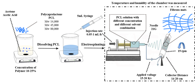 PCL with three different molecular weights (Mw) 14,000 g(mol-1, 45,000 g(mol-1 and 80,000 g(mol-1 was used, all polymers were purchased from Sigma-Aldrich. The acetone and acetic acid were purchased from Merck.