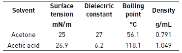 In Table 4, we have shown different properties of solvents such as surface tension, dielectric constant and boiling point that should be kept in mind in the electrospinning process.