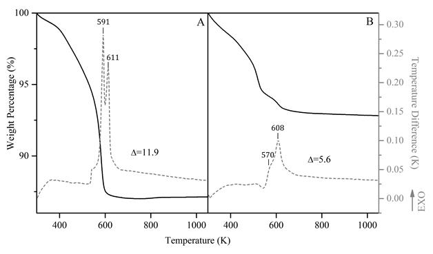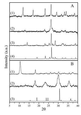 X-Ray diffraction was carried out in a Miniflex model Rigaku equipment with Cu source (λ= 1,5418 Å) operated at 40 kV and 30 mA for values between 5 and 40° and with scanning rate 2° min-1. The thermal stability of the materials was studied by thermogravimetric analysis (TGA) and differential thermal analysis (DTA). TGA was carried out in TA Instruments Hi-Res TGA 2920 in a temperature range between 303 K and 1073 K, at a 10 K min-1 heating rate, under inert atmosphere (N2) and DTA was carried-out on a TA Instruments DSC 2920 model using the same conditions as in TGA. Additionally, fourier transform infrared (FTIR) spectra were obtained with a Perkin Elmer Spectrum One equipment. The samples were prepared as wafers containing ~1 wt% sample in KBr. Moreover, the temperature-programmed reduction (TPR) analyses was performed in a Zeton Altamira AMI-70; in this case, the pre-treatment was carried-out by heating the sample (50mg) from room temperature to 573 K under argon atmosphere, and the catalyst reduction took place under a 30 mL min-1 flow of H2 (10 vol %)/Ar mixture, raising the temperature from room temperature to 1273 K at 10 K min-1.