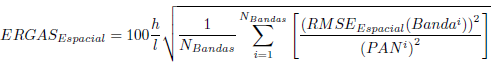 Where h and l represent the spatial resolution of the panchromatic and multispectral images [22]. N Bands is the number of bands of the fused image; and i PAN is the value of the radiance in the i-th band of the image [26, 27] (see Table 1].