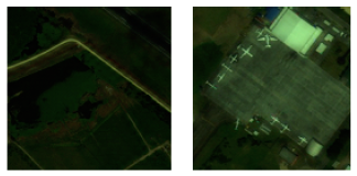 For the analysis, Figure 7 shows two planes taken from the images under assessment. Using the spatial ERGAS index, the results indicate that the best image is the one obtained with the Curvelet and Ridgelet transform. This result can be associated to the observable image as a shadow enhancement on the white color of the airplane, also as a better definition of the runway around the objects.