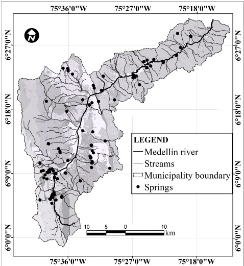 New analyses will be necessary to evaluate the origin of this water and discern if its composition is the result of temporary effect, or if it is an indication of a different source of recharge. The most impoverished points imply a source of localized recharge at altitudes above 1,900 m.a.s.l. These sites correspond to some springs located on the right border of the Medellín river.
