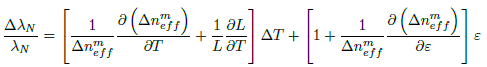 indicates the applied strain. Both the changes of temperature and strain contribute to the wavelength shifts, which mean that the MI can be used either as temperature or strain sensor [12].