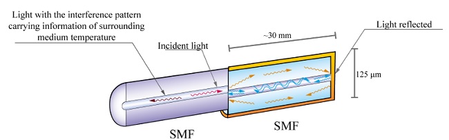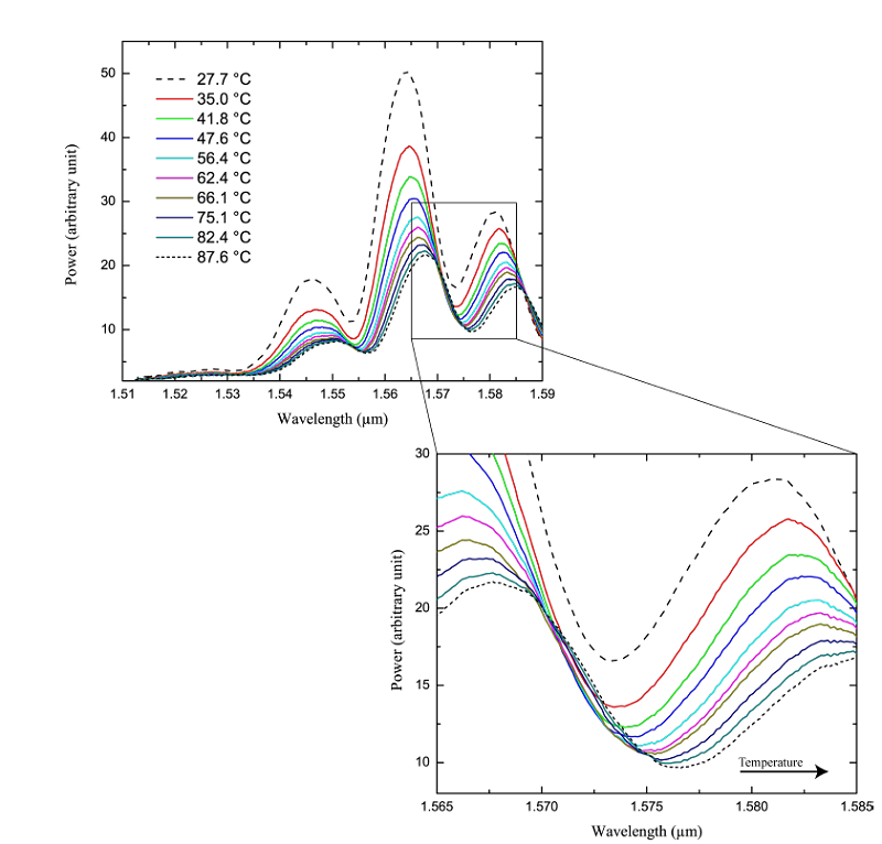Optical fiber-based temperature sensors have been the focus of intensive research due to their multiple advantages such as small size, light weight, immunity to electromagnetic interference, harsh environment tolerance, and multiplexing capabilities.