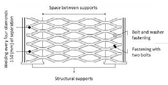 Next, a methodology is presented to calculate maximum load capacity that any type of expanded metal mesh can support, maintaining its structural behavior within the elastic range of the material without becoming plastically deformed, since this situation represents a failure in the structure regardless of whether it will ever fracture. Geometry, magnitude and type of loading on the meshes, and span between supports are extremely important parameters for this study. These are conditioned to the restrictions imposed by the standard for expanded metal mesh. Finally, conditions of expanded metal meshes are evaluated following the recommendations established in EMMA 557-15 Standard [8].