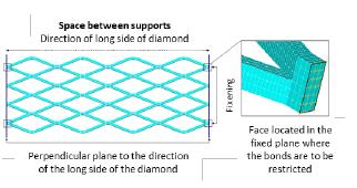 Boundary conditions suggested by EMMA 557-15 Standard [8] were applied. This standard specifies that meshes must be welded or fastened every 150 (mm), or every four patterns to a structural support as shown in Figure 4. It is always necessary to install the mesh with an orientation parallel to the distance between supports.
