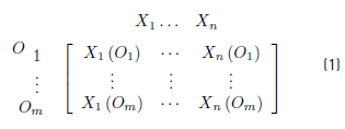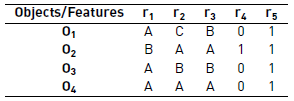 From Table 2, corresponding to objects of Group I, the possible concepts are: {A,O}; {B,1};{B,O};{A,1}.