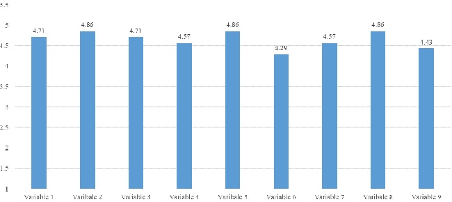 The experts evaluated each variable on a Likert scale [16], where 5 represents the expert’s complete agreement and 1 the means the expert totally disagrees with the evaluated variable. All the average values resulting from the expert’s evaluations exceed the value of 4; therefore, the application of the model is feasible, as shown in Figure 1.