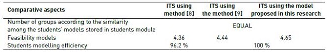 Table 4 shows the comparison of ITS with three different models for studying the basic theory of Logical Combinatorial Pattern Recognition using different methods of knowledge engineering and student modeling.