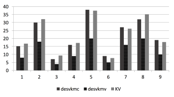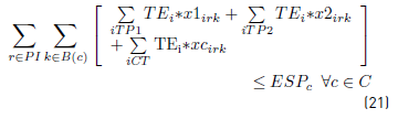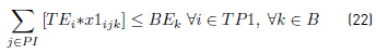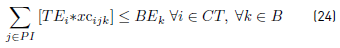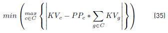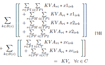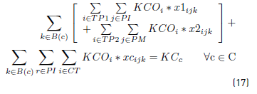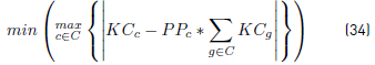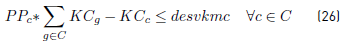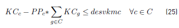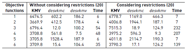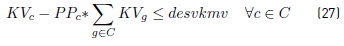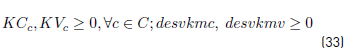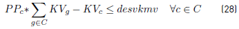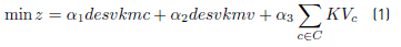 In order to obtain a linear model, the objectives given in (34) and (35) are obtained introducing the variables desvkmc, desvkmv and constraints (25) to (28). Constraints (29) to (33) are domain constraints.