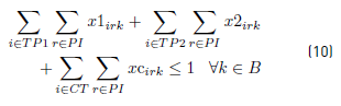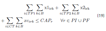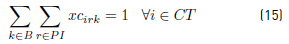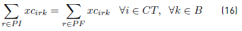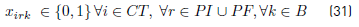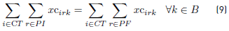 xcirk: 1 if i ( CT is assigned to bus k ϵ B, starting at depot r ( PI, or ending at depot r ( PF, 0 otherwise.