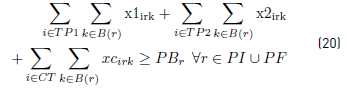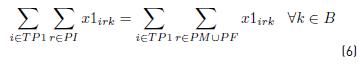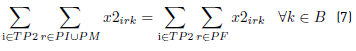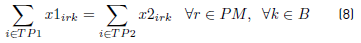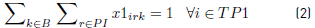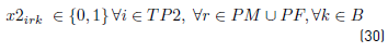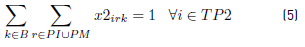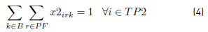 x2irk: 1 if the task i ( TP2 is assigned to bus k ϵ B starting at depot r ( PI(PM or ending at depot r ( PF , 0 otherwise.