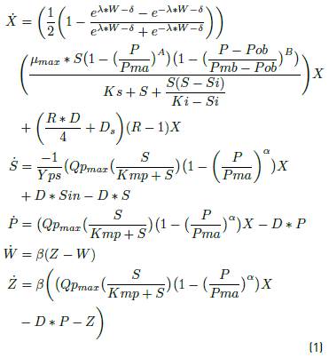 In equation 1, the state space representation of the Zymmomonas mobilis system is presented: