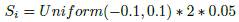 For example: if we have a parameter i whose posible values vary between 1 and 3 (that is, with an amplitude of 2), and we use a uniform distribution between -0.1 and 0.1 and a Σ factor of 0.05, in order to calculate the value of the summation vector for this parameter we apply the formula as follows: