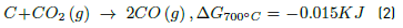 Reaction (1) is favorable for the process since the produced CO2 (g) when mixed with excess carbon results in the Boudouard reaction, as shown in Equation (2):